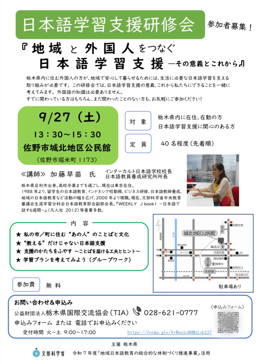 で、なんであれ、栃木県佐野市での日本語学習支援研修会。