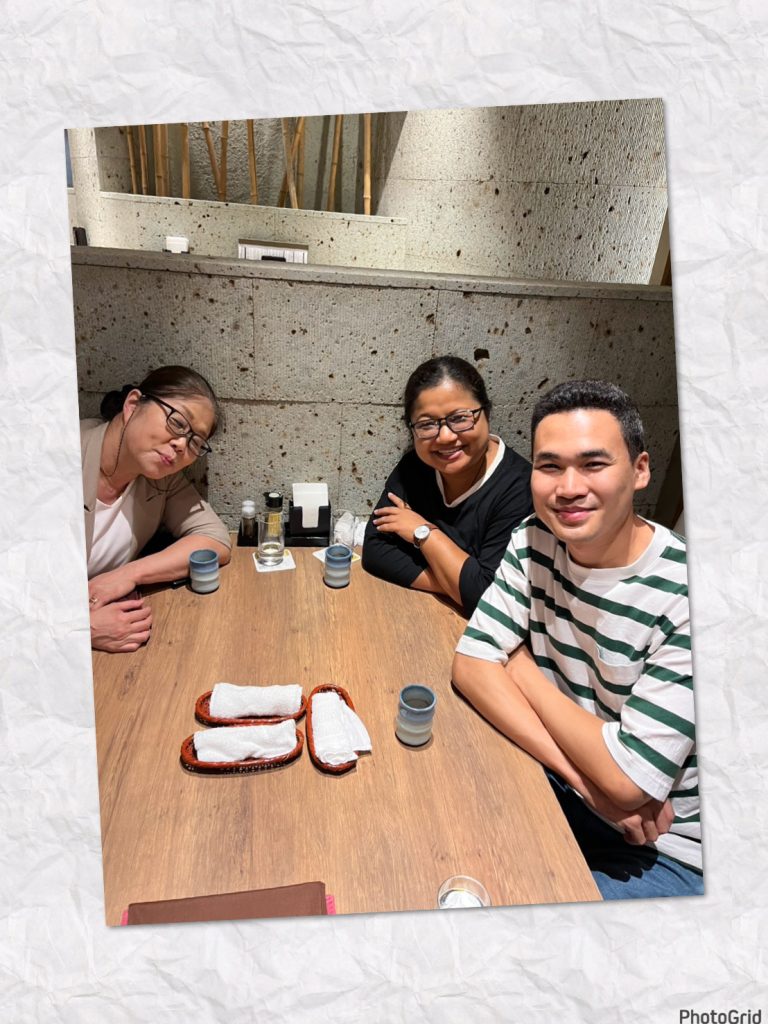 まずは東京。昼間、学校に来てくれて、夜一緒に食事。