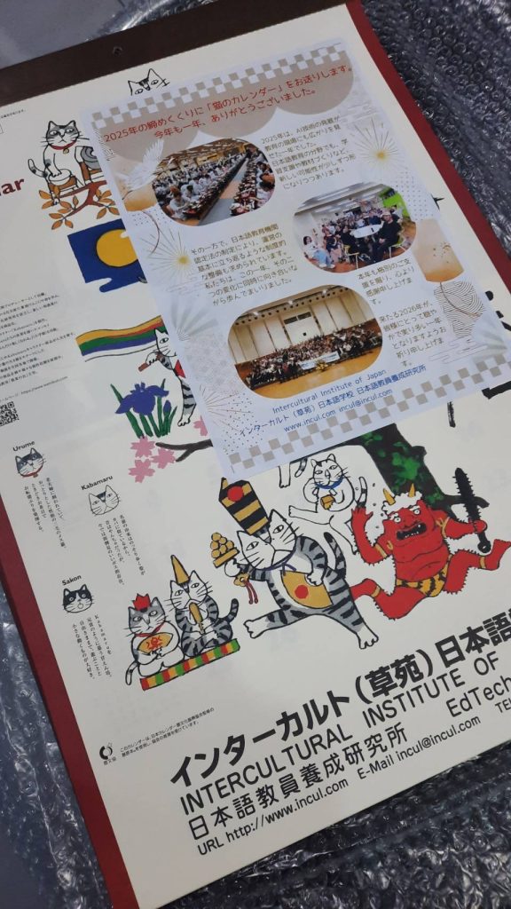 学校からの手紙の陰に隠れているけれど、これ、「招福ねこ暦」。