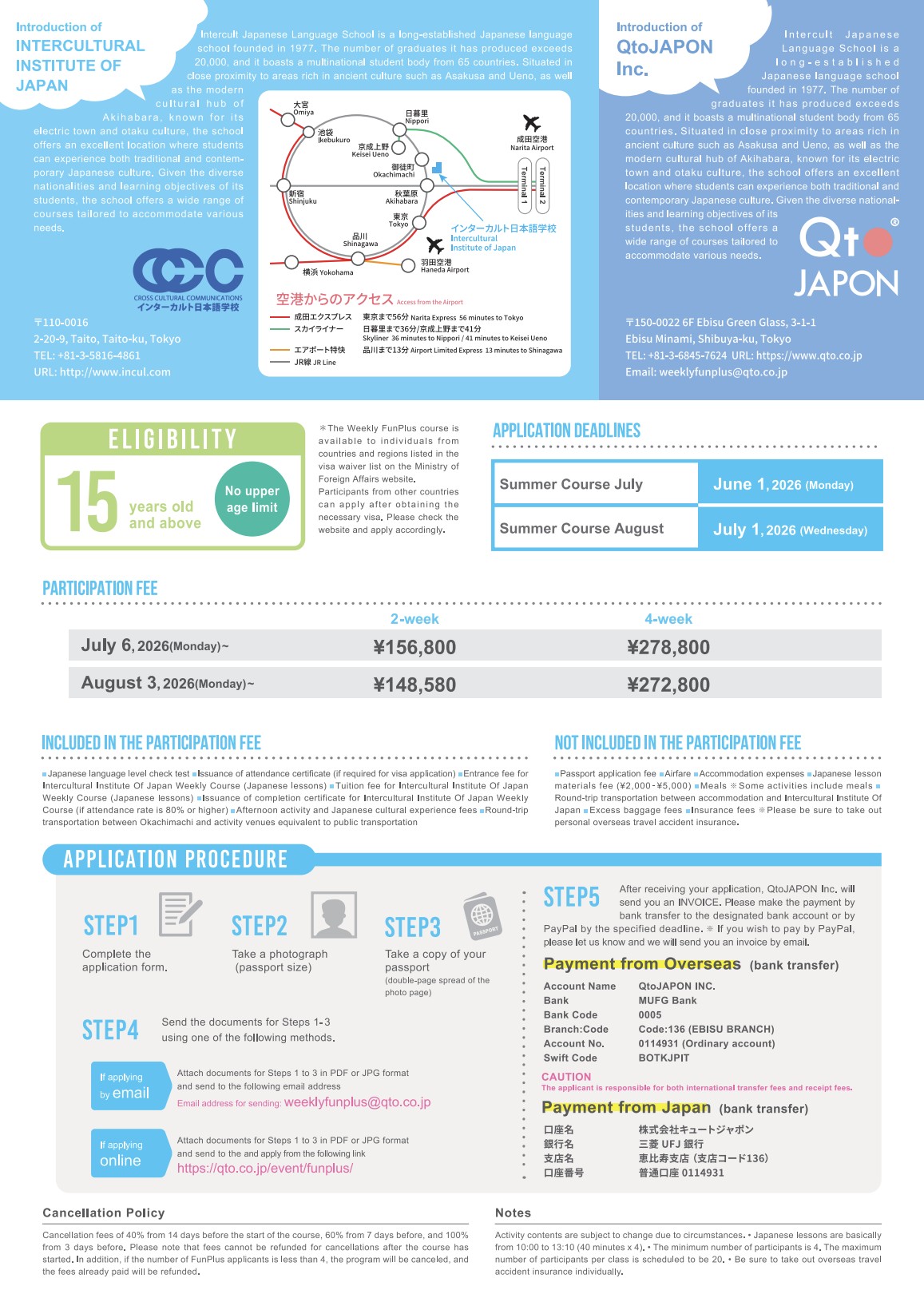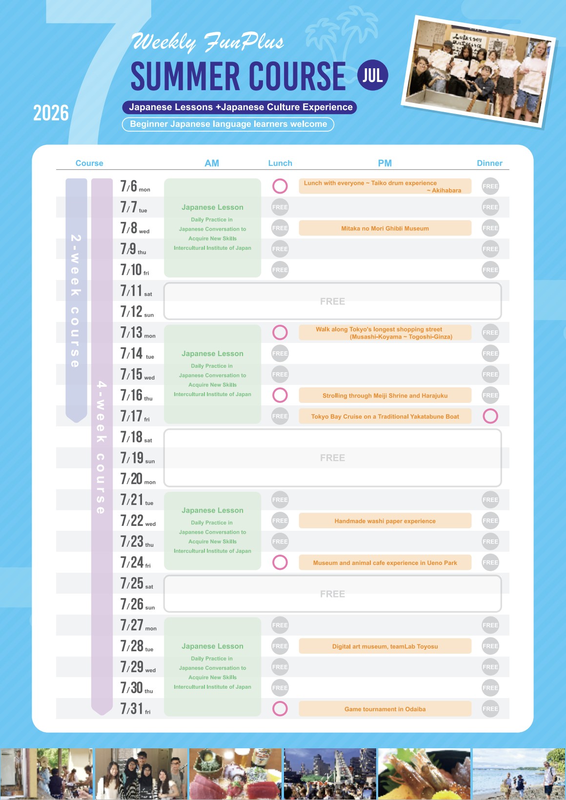 Weekly FunPlusコース(2026年7月・8月)のお知らせ