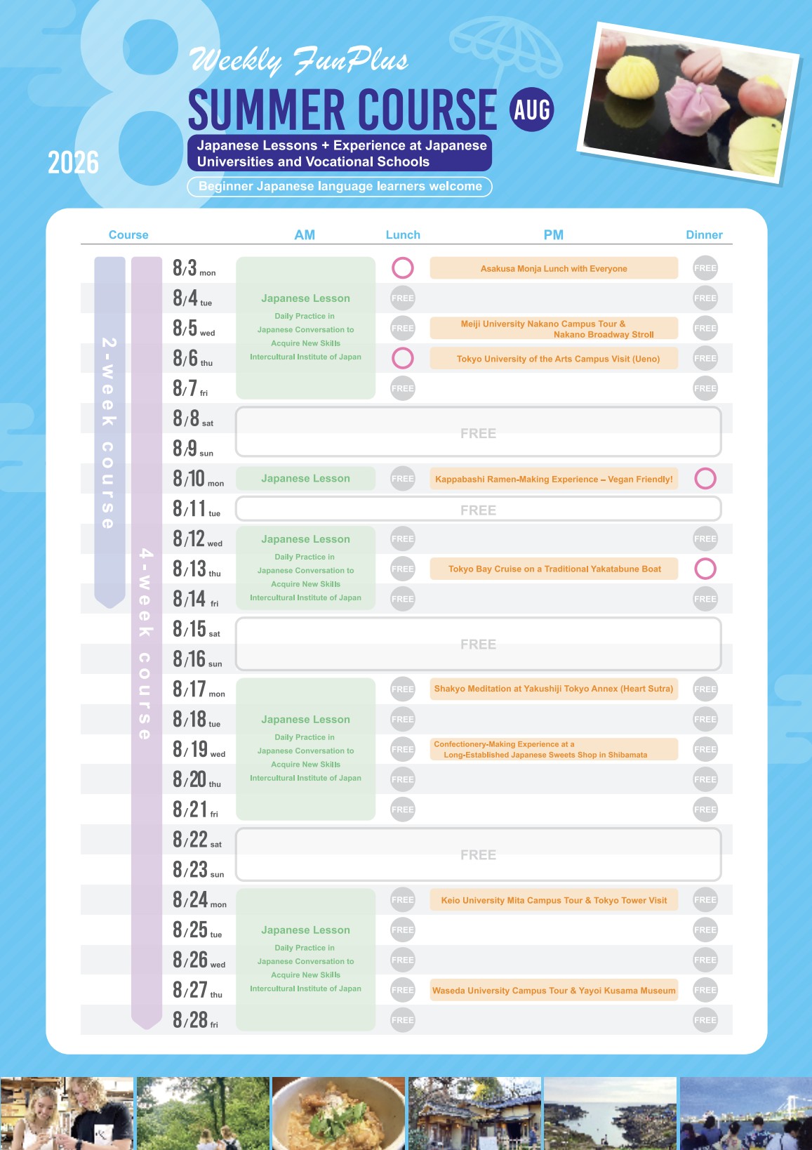 8月のFunPlus:日本語レッスン+大学&専門学校ツアー